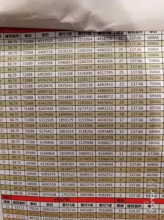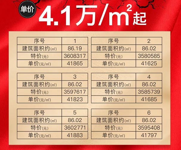 住宅户型均有99折,在约定时间内交齐定金,还可能申请到额外一个99折。算下来,一套低楼层的87平3房,单价约在4.7万/平,一个99折后410万,首付三成123万,月供30年,每月还款16000元。