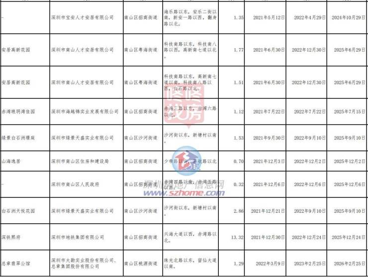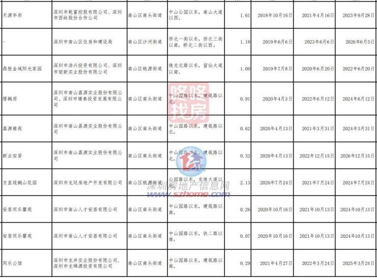 包含62个项目,其中,南山街道14个,包括前海时代三期、颐城臻湾悦等;西丽街道4个;桃源街道8个,包括汉园茗院、杏林雅苑等;南头街道16个;沙河街道4个;招商街道8个,包括山海丹华府等;粤海街道5个;蛇口街道3个。