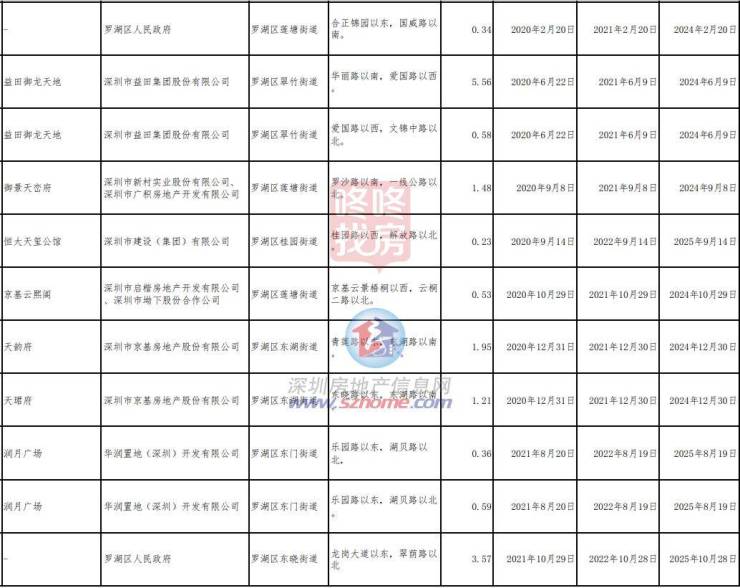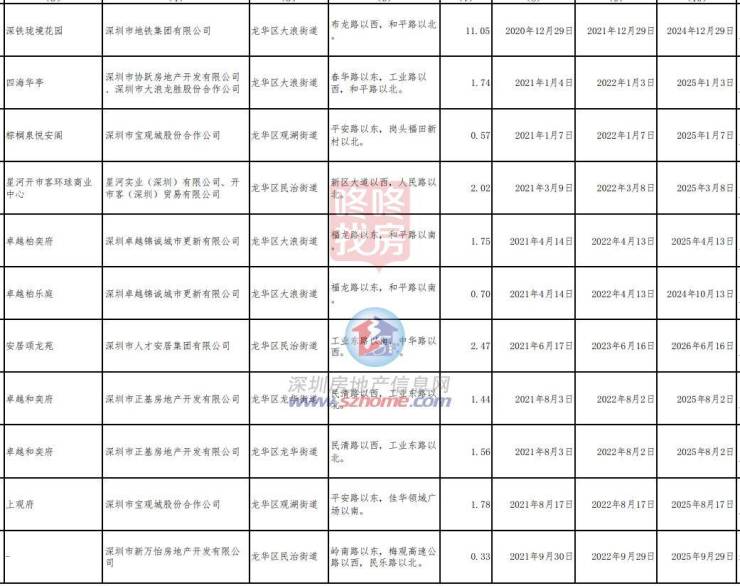 (由于项目较多,龙华区仅截取部分截图)
