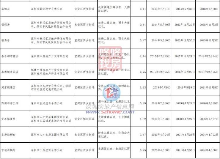 包含82个项目,其中,西乡街道16个,包括盛锦苑、泰禾都市花园等;福永街道7个,包括安居福厦里等;福海街道7个,包括安居福汇阁等;航城街道4个,包括盛合天瑞家园等;松岗街道7个;沙井街道14个,包括新城华苑、招商雍和府等;新桥街道10个,包含万丰海岸城等;新安街道11个,包含胤璇中心大厦等;石岩街道6个。