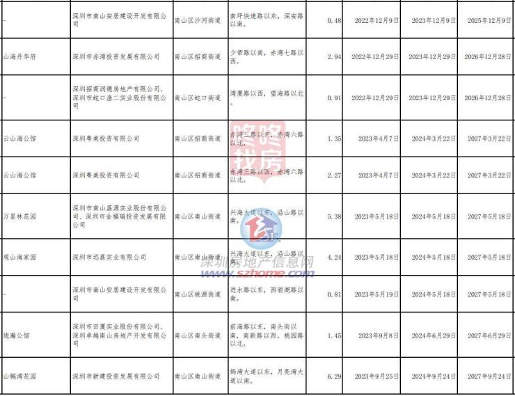 (由于项目较多,南山区仅截取部分截图)