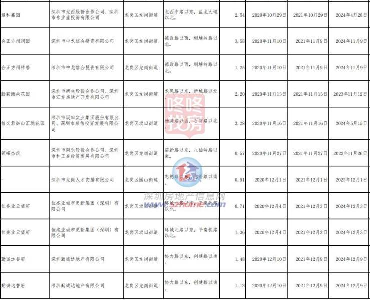 (由于项目较多,龙岗区仅截取部分截图)