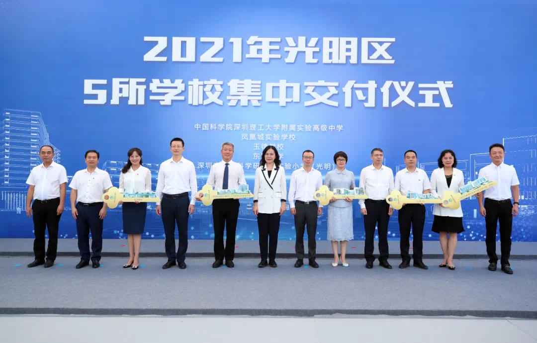 光明区委副书记、区长蔡颖,市教育局党组成员、副局长陈志锋,区委常委、区政府党组成员姚高科,副区长张宗平出席此次学校集中交付仪式。参加仪式的还有区委区政府办公室分管负责人,区教育局、区建筑工务署主要负责人及分管负责人,中科附中等校方代表和项目参建单位代表等。