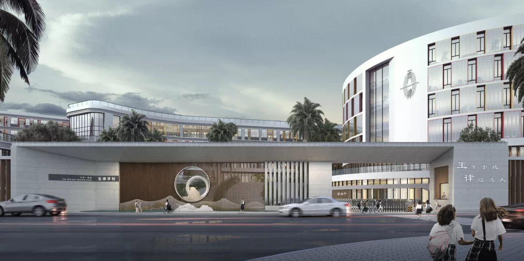 学校规模:项目占地面积23436.46平方米,新建总建筑面积60625平方米,定位为九年一贯制学校,由玉律小学原有1080个学位,扩建工程后新增1440个学位,办学规模为54个班,提供2520个学位(小学36班,初中18班)。