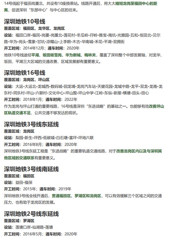 深圳市轨道交通14、16号是推进城市一体化、落实东进战略的重要举措,根据《国家发展改革委关于深圳市城市轨道交通第四期建设规划(2017-2022年)的批复》的通知,坪山区地铁建设已于2018年1月份正式动工,预计2022年底开通试运营。