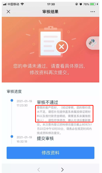 有置业者由于银行流水不足被打回来的,需要直系亲属的担保证明,还需提供首付款资金明细。这里要注意直系亲属的担保,父母、夫妻、子女可以,兄弟姐妹属于旁系,还有就是首付款资金明细,会看首付款的资金来源。