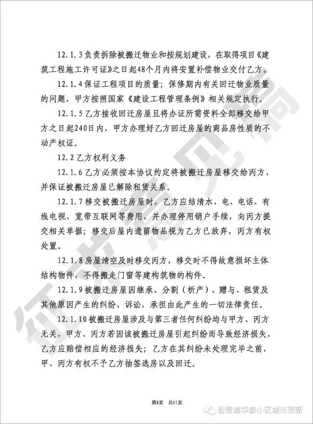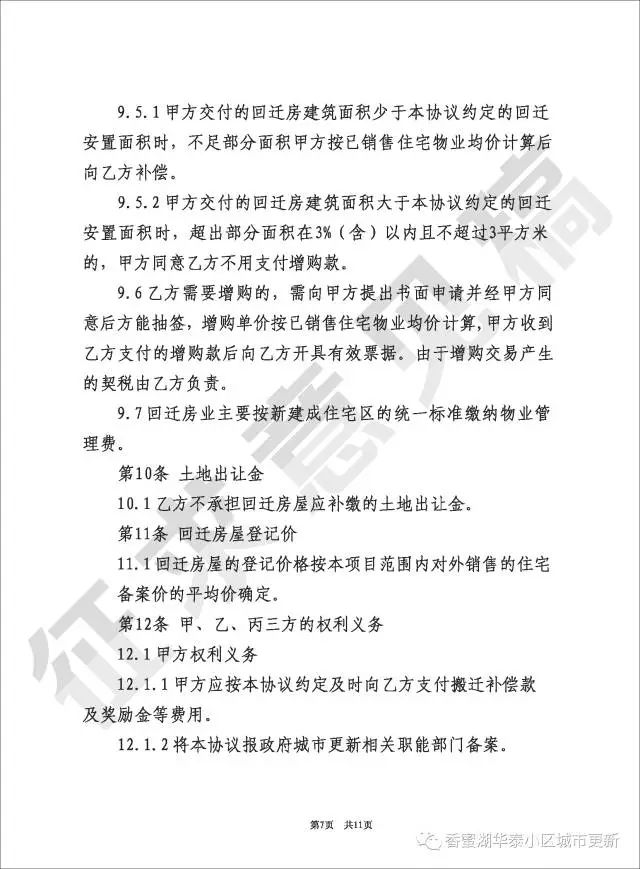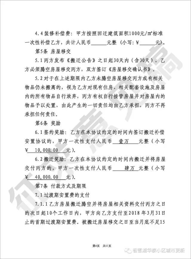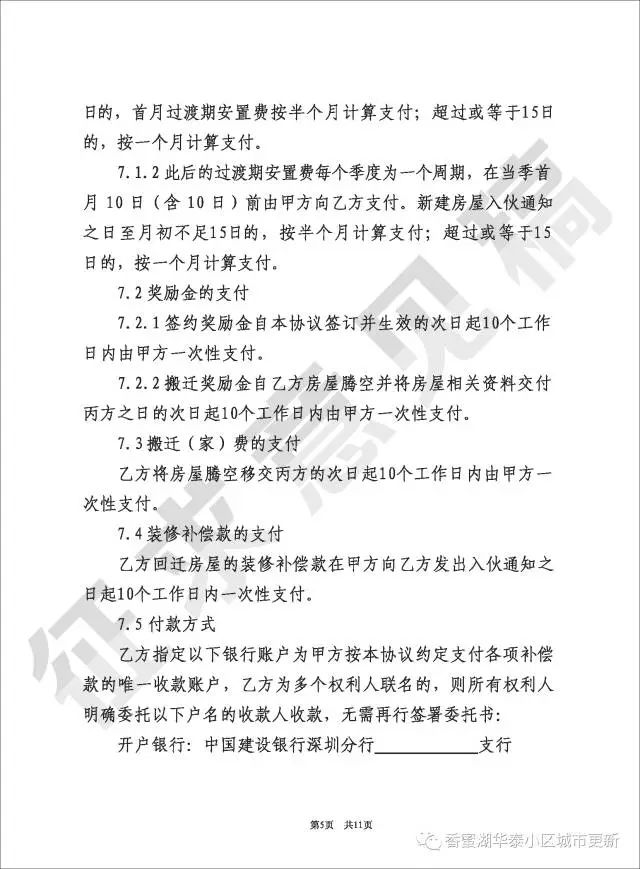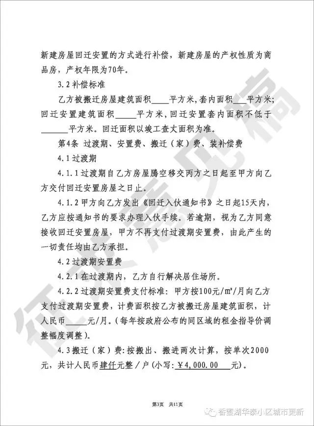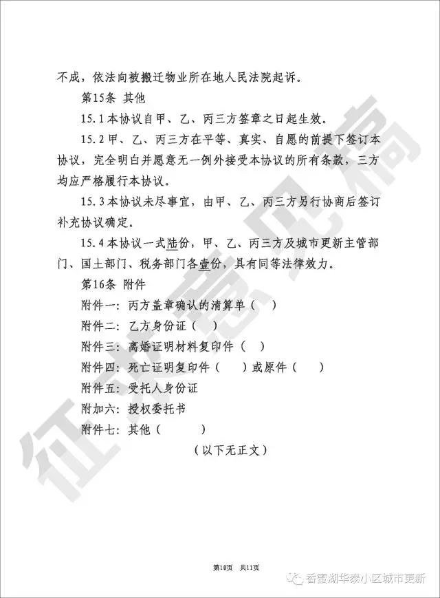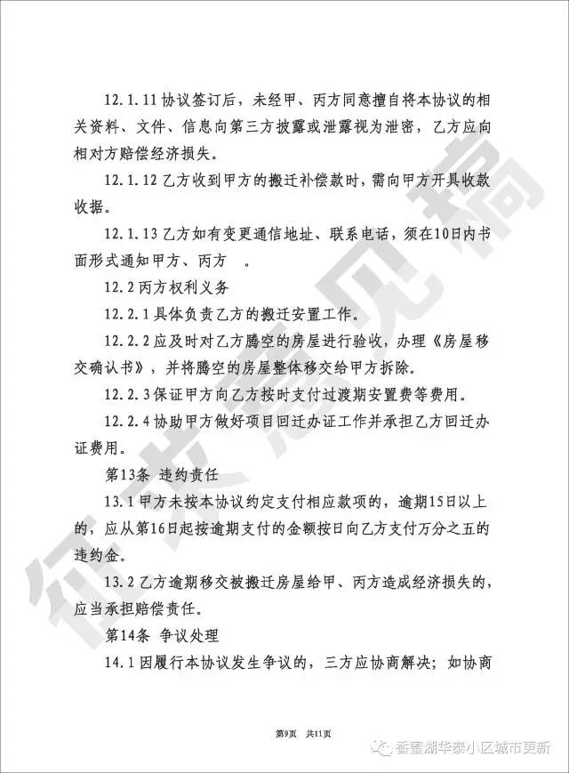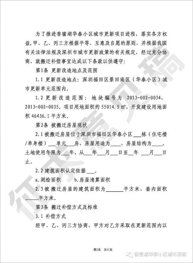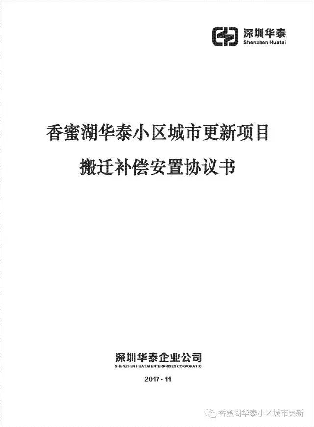 《香蜜湖华泰小区城市更新项目搬迁补偿安置协议书(征求意见稿)》(上下滑动查看)