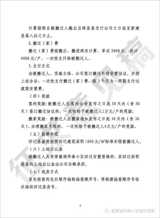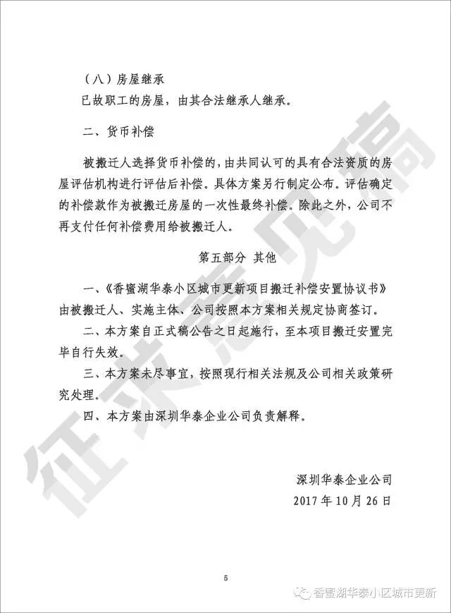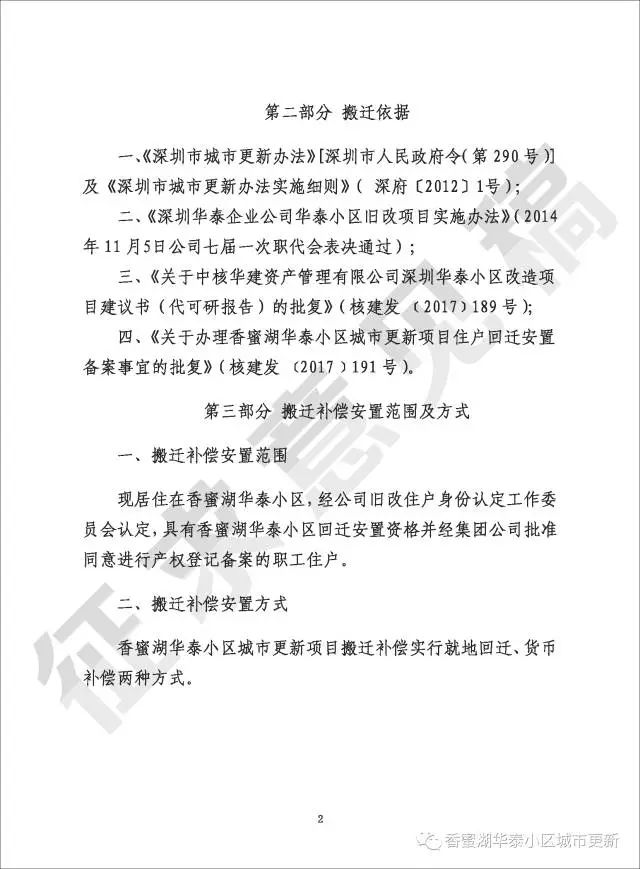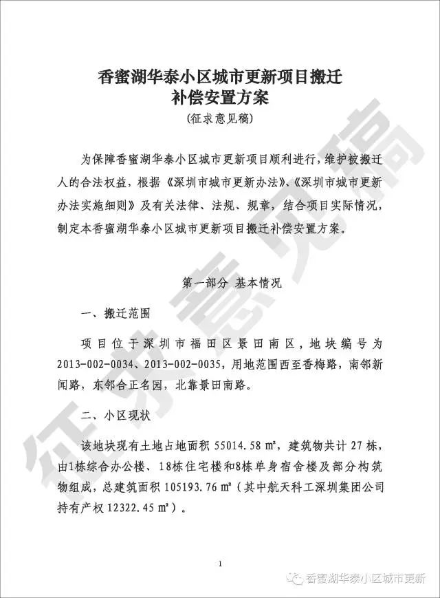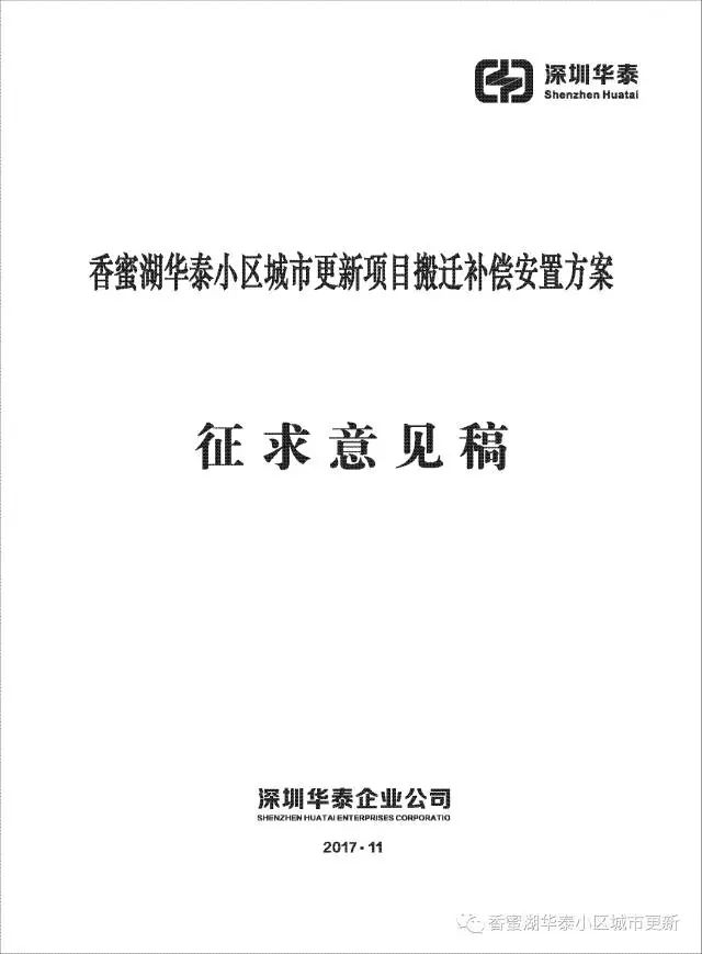 《香蜜湖华泰小区城市更新项目搬迁补偿安置方案(征求意见稿)》(上下滑动查看)
