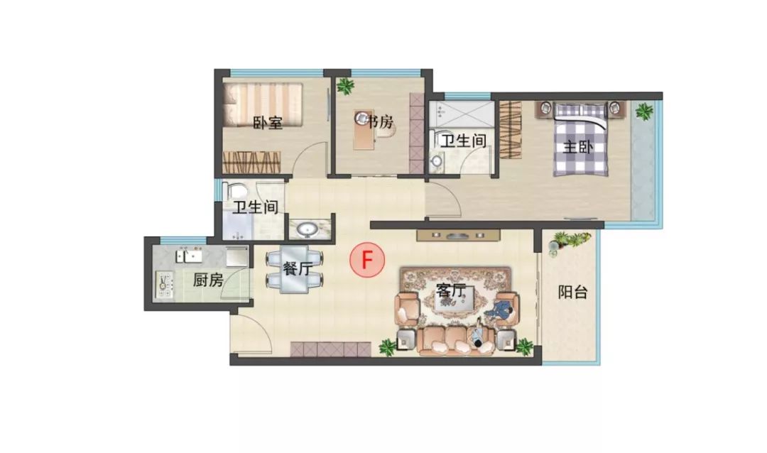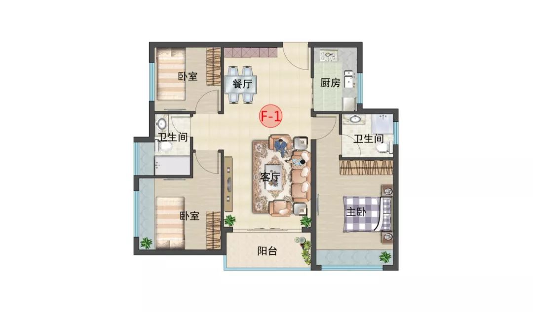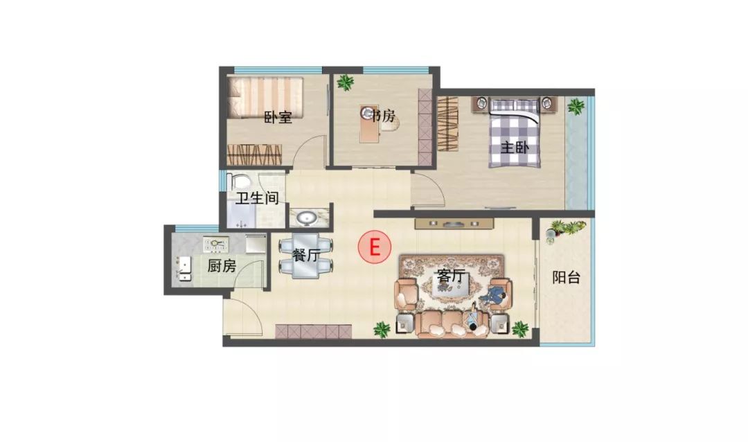 90平3房(E)、95平3房(F)户型图(左右滑动查看)
