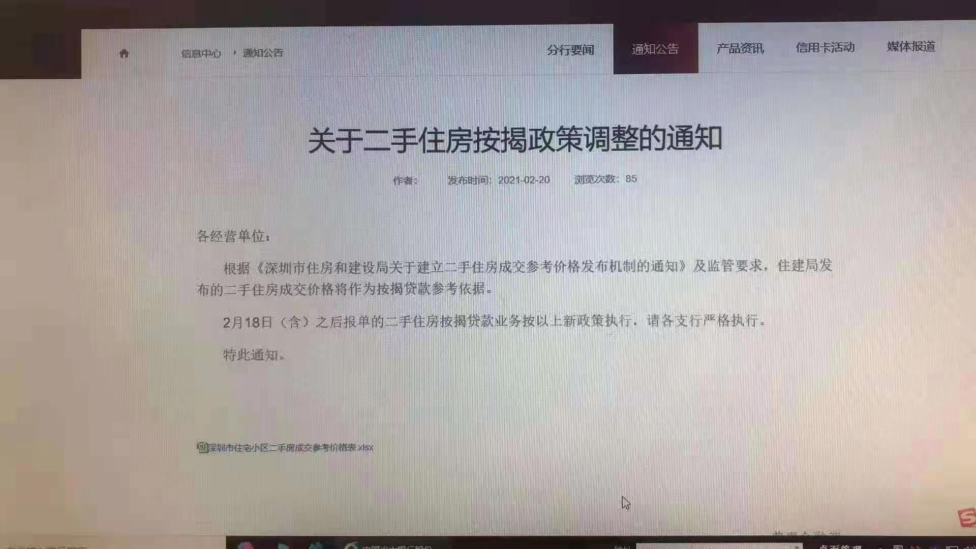 昨晚,深圳一银行内部下发了一则《关于二手住房按揭政策调整的通知》(下称“通知”);