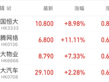 截至收盘,中国恒大大涨8.98%,恒大物业大涨7.33%,恒腾网络大涨11.11%,恒大汽车涨2.28%。