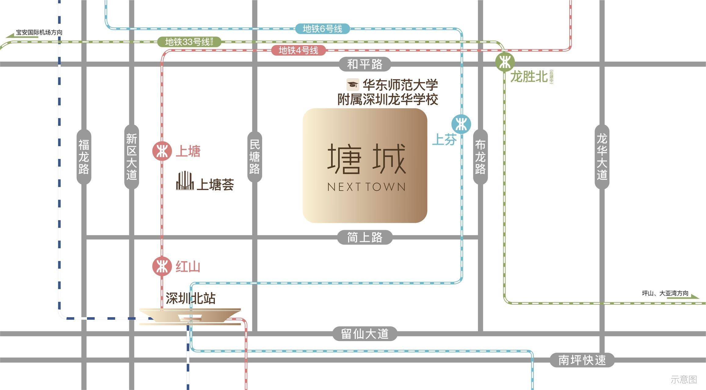 项目是一个用地面积约3.5万平方米,容积率11.4,拥有住宅、商业、办公三大业态,建面约55万㎡的TOD综合体大城,其中包含可售住宅约13万平方米,可售商业约6万㎡,可售办公约13万㎡。项目核心价值构建生态场景TOD大城,构建了五大生活场景,便捷交通场景,三地铁交汇,作为深圳的13个城市交通枢纽节点之一,实现了与城市的无缝衔接;城市空间场景,三大业态并存,在一个项目中实现了构成城市空间的基本要素的整合构建,使之成为一个微型的城市,能够满足城市生活的基本需求;日常闭环场景,项目业态产品集合,集品质住宅、优质商业、商务办公于一体,实现居住、购物、工作于一体,完美闭环日常生活的方方面面;超级中心场景,深圳13个城市交通枢纽节点之一,三条地铁交汇,集合了北站商务区及龙华超级商圈等城市中心区域,当之无愧的超级中心;都市办公场景,约13万㎡的办公体量,甲级标准写字楼,主塔高度179米,天际景观一览无余,未来将成为上塘片区地标封面,为都市商务精英而作。