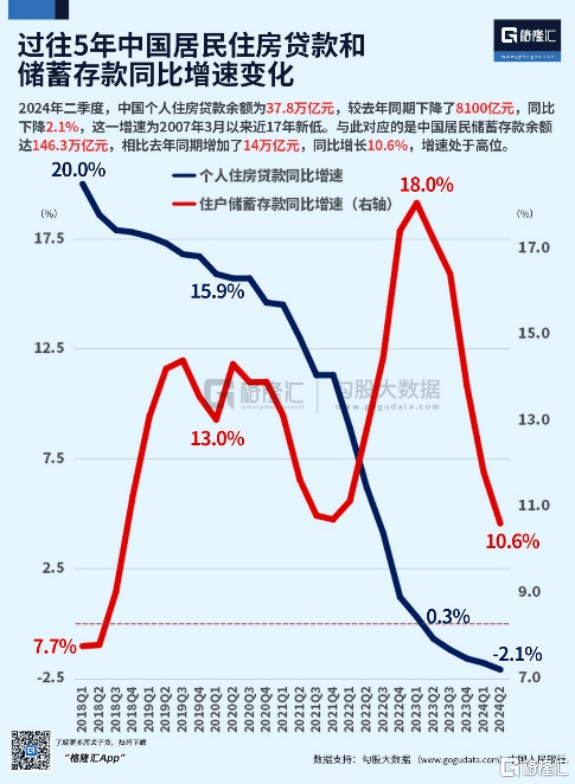 银行不降存量房贷利率的结果之二,就是会同时令银行的负债端也恶化。银行不肯“共度时艰”,老百姓就只能防患于未然。买房、买车肯定是不可能了,大消费让位于提前还贷,小消费节省以备不时之需,结果就是大量资金退出了流通领域,躲进了银行储蓄账户“保平安”,金融系统被超额存款“撑爆”。2024年上半年,我国居民储蓄存款余额高达146.3万亿元,相较2023年年底增加了9.27万亿元,同期,居民户的贷款呢,仅仅增加了1.46万亿元。