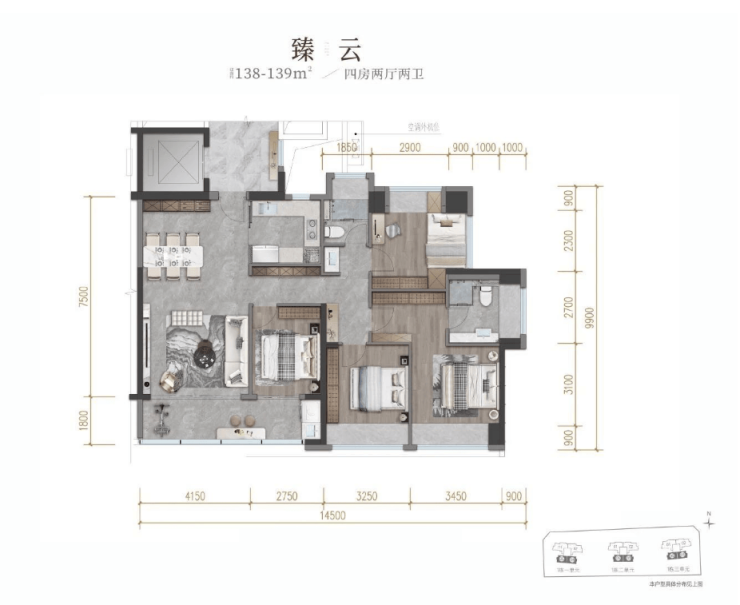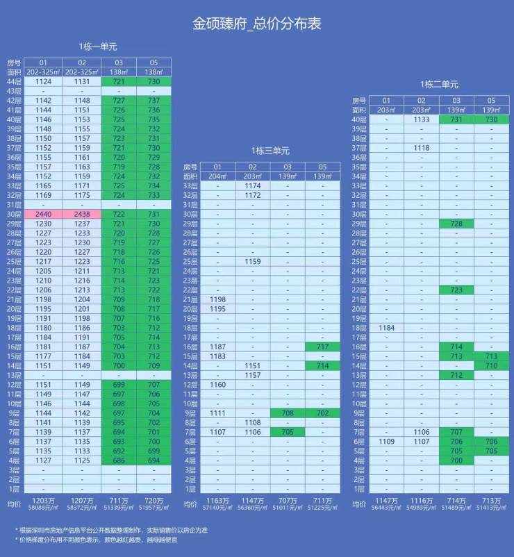 金硕臻府本批推出约192套房源,位于1栋1、2、3单元,主推户型为建面约138-139㎡/202-204㎡大户型,另有少量325㎡,项目备案均价约5.47万/㎡,备案单价约4.98-7.5万/㎡。