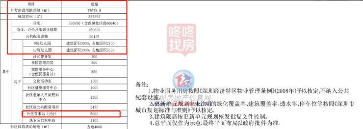 其中住宅366930平方米(含保障性住房66040平方米),商业、办公及旅馆业建筑150000平方米,公共配套设施20425平方米(含12班幼儿园3900平方米、占地3600平方米,9班幼儿园3000平方米、占地2700平方米,公交首末站5000平方米,社区健康服务中心1000平方米,老年人日间照料中心1200平方米,文化活动室1500平方米,社区管理用房300平方米,社区警务室100平方米,党群服务中心(含便民服务站)850平方米,地下公共充电站1100平方米,社区级公共配套用房2475平方米)。另配建社区体育活动场地占地面积4000平方米,物业服务用房按照《深圳经济特区物业管理条例》予以核定。