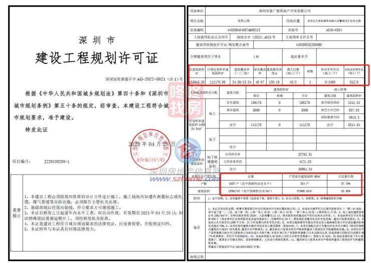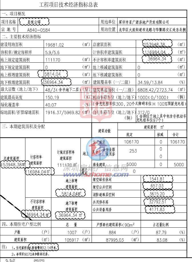 星河星悦云邸由深圳市星广源房地产开发有限公司开发,从本次公布的规划许可证显示,星河星悦云邸由4栋48层超高层楼体组成,共规划1007套住宅,其中户型套内建面<90㎡的户型884套,占总房源数的87.7%。