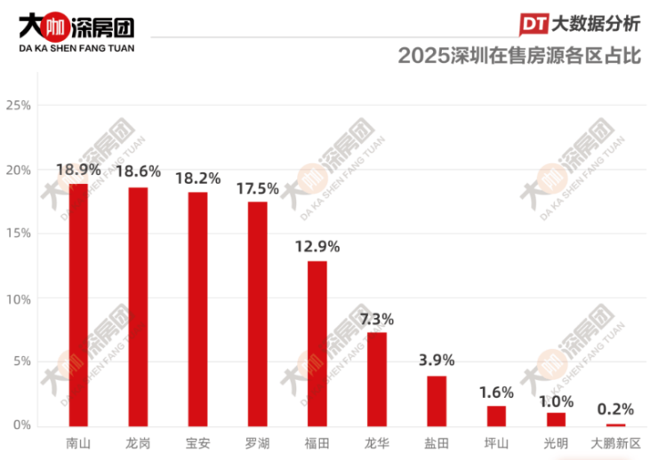 目前深圳在售二手房中,挂盘量最高的是南山区,占比18.9%。