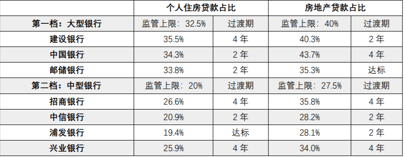 排名前列道红线:“房地产贷款占比”,大型银行不得超过40%,中型银行不得超过27.5%;