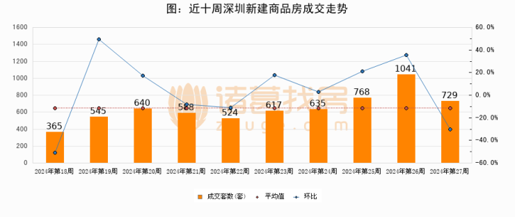 【深圳成交周报】第27周新房成交729套,二手房1348套,涨价房源1751套