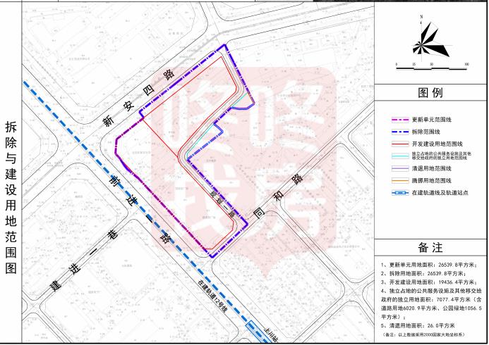 更新单元用地面积26539.8平方米,拆除范围用地面积26539.8平方米,开发建设用地面积19436.4平方米,规划容积168195平方米。