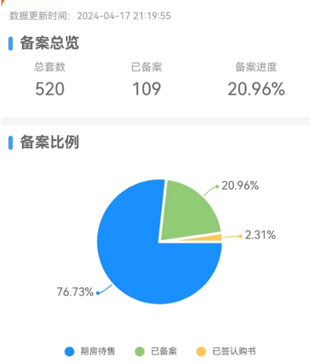 上一批房源于2023年10月推出,主推户型为建面约86-141㎡产品,时隔近半年,去化率仅2成。