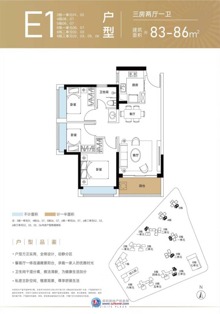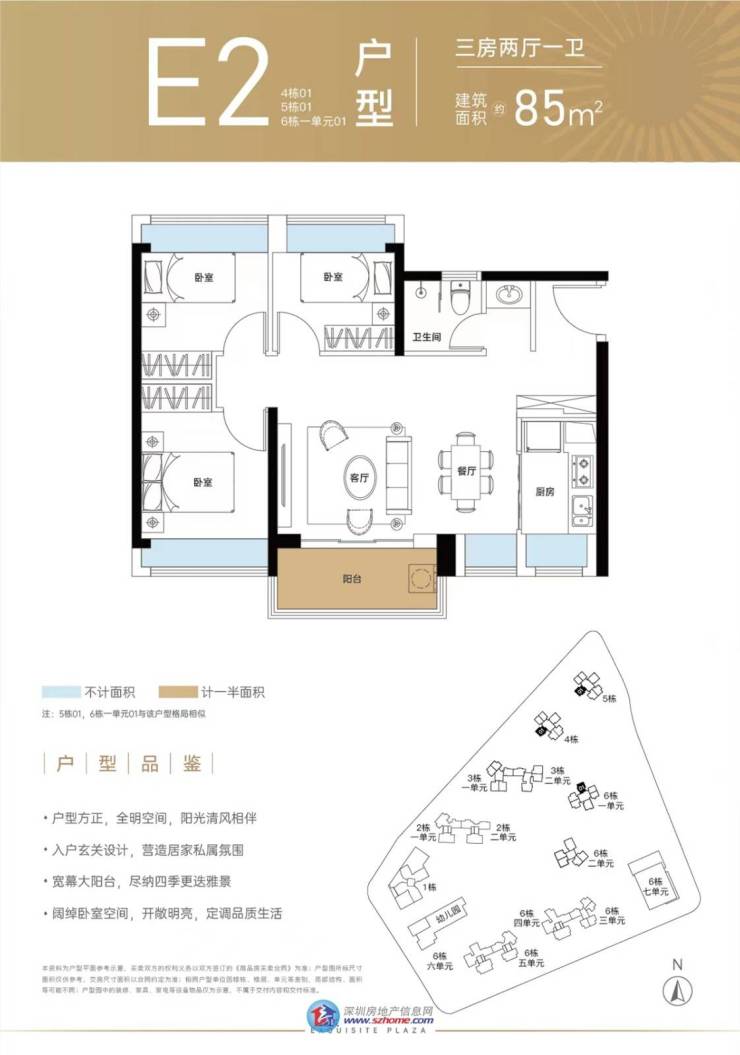 项目可售住宅户数1568户,梯户比为3梯6户,加推户型建面约69㎡、83-86㎡、85㎡、95㎡,折后单价约2.8万/㎡起。