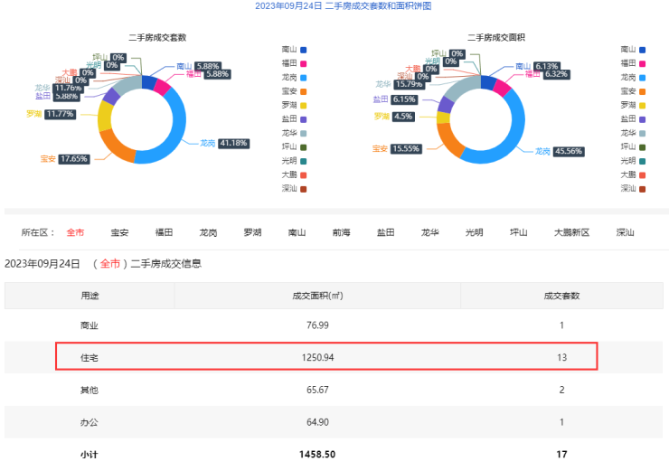 9月24日二手房住宅网签13套。宝安3套;福田1套;龙岗5套;罗湖0套;南山1套;盐田1套;龙华2套;光明0套;坪山0套;大鹏0套。