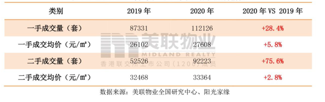 表5:2019-2020年广州一、二手住宅成交量价情况