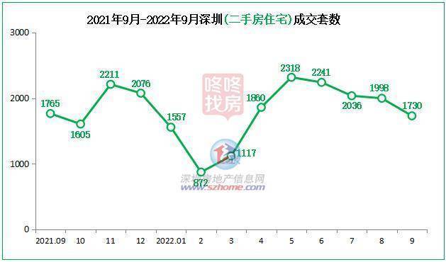 统计数据显示:2022年9月深圳成交1730套二手房住宅,环比减少13.4%;成交面积162997平方米,环比减少15.7%。