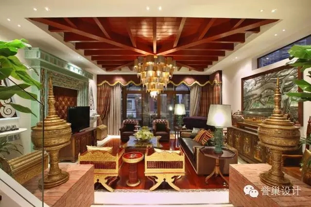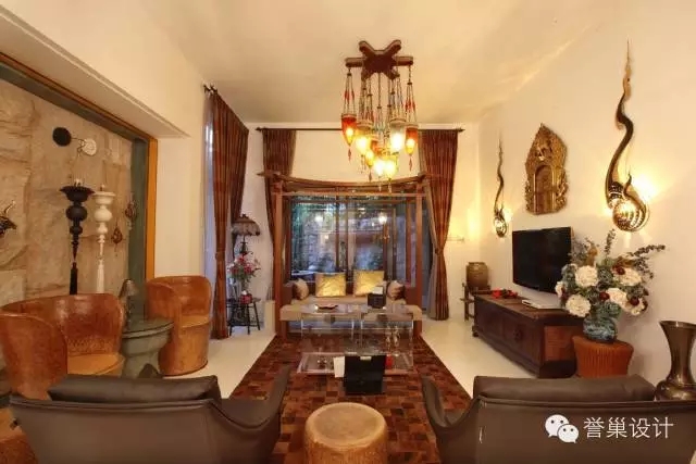 本案采用白色抛光地坪漆、贝壳马赛克、渐变色马赛克、实木、铜条线拼花等,展现出抽象的自然之美,搭配从东南亚精心挑选的家私及配饰,别具一番情调;开阔视角的空间呼应前后花园丰富的植被,整栋居室透射出一股新东南亚朴实、自然、慵懒的情境。