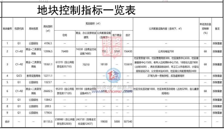 该更新单元规划(草案)公示指标为:用地面积106739㎡,拆除范围用地面积106653.1㎡,开发建设用地面积59960.1㎡,规划总容积507540㎡,容积率8.5。