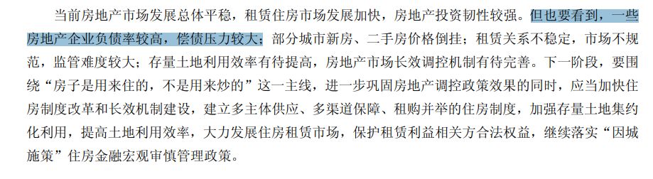 当前房地产市场发展总体平稳,租赁住房市场发展加快,房地产投资韧性较强。但这其中也存在一些问题,比如部分房企负债率较高,偿债压力较大。