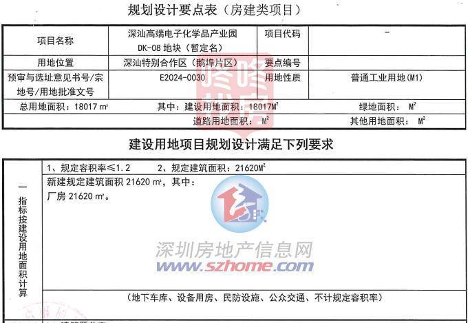 E2024-0030宗地,新建规定建筑面积21620平方米,其中厂房21260平方米。
