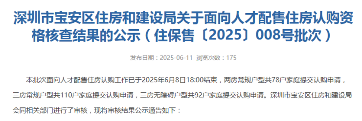 262批合格家庭入围!宝安30套人才房认购审核