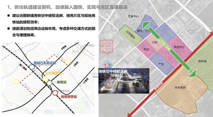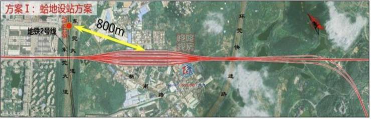 方案1将有高铁空中接驳连廊,蛤地高铁站周边将有地铁蛤地站、公交首末站、南城汽车客运站。