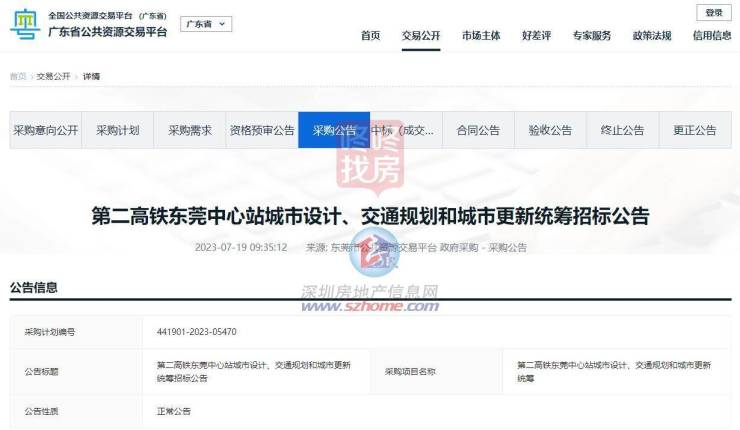 7月19日,广东省公共资源交易平台发布《第二高铁东莞中心站城市设计、交通规划和城市更新统筹招标公告》,此次招标主要是枢纽片区交通规划研究及设计,招标合同包预算金额560万元。