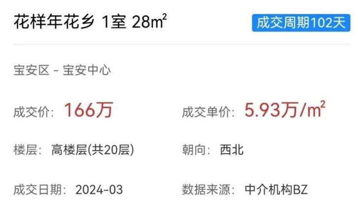 目前,小区整体成交价回落至7万/㎡左右,相当于腰斩了。其中,今年3月份同样面积的户型,更是抛出了一套笋盘,单价5.93万/㎡,总价166万。