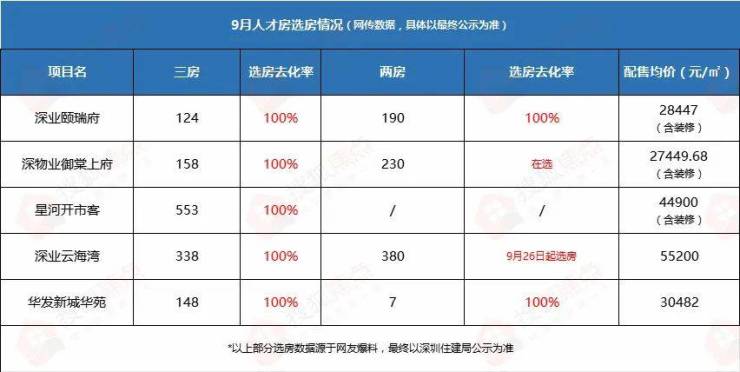 在放松政策叠加多重市场利好之下,深圳可售人才房项目也加快了推盘进,仅在8-9月批就共有9个项目共推出3659套房源,如今超1700套房源已被选完,你觉得后续项目能全部清盘吗?欢迎评论留言。