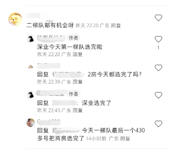 上午9点开始,深业云海湾人才房三房开始选房,每组选房时间为3分钟。