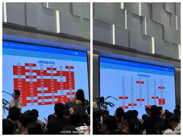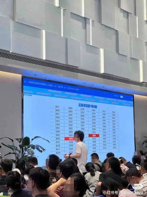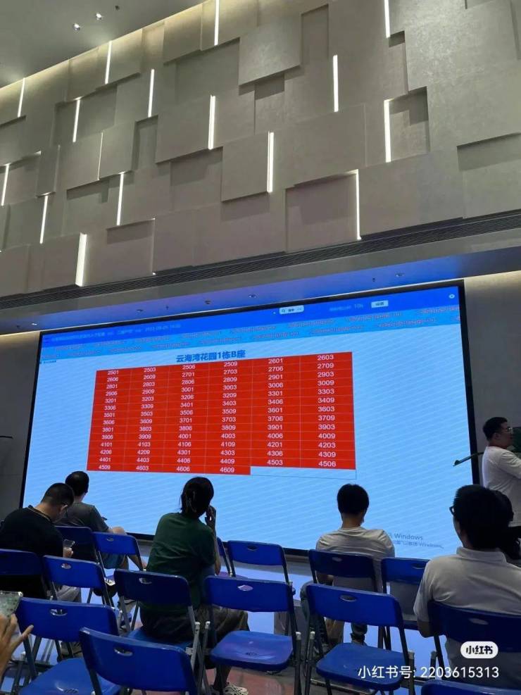 10点左右,有网友在小红书爆料,现场叫号叫到80+了,此时大屏幕显示2栋A座有33套房源被选定。