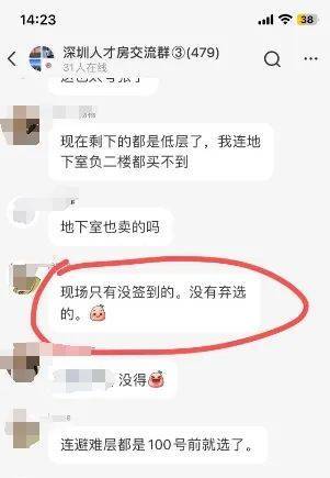 14点23分,有网友在购房群分享,“目前仅剩下低楼层房源”,“现场只有没签到的,没有弃选的”。