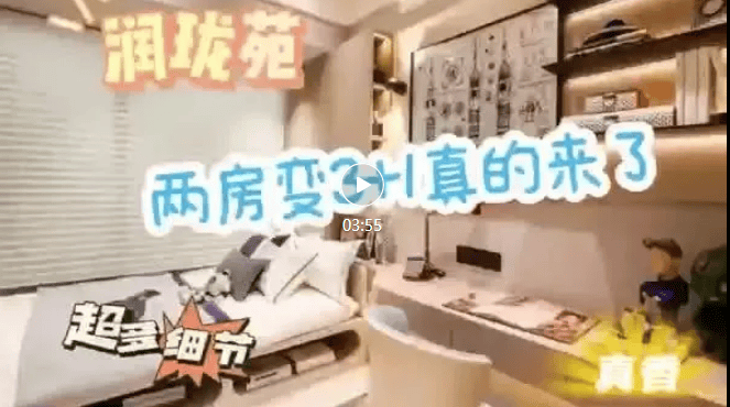 项目现场活动看房送米油,买房送家电礼包等活动似乎没有了新鲜感,润珑苑本批房源主打“卷”户型。比如,在项目的样板间视频中可以看到配的文案是“2房变3+1房”,通过装修创意对户型“爆改”。