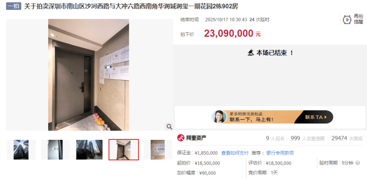 虽然价差没有深圳湾悦府大,但同样吸引了29474人围观,9位买家报名,最终竞价25轮才落锤。