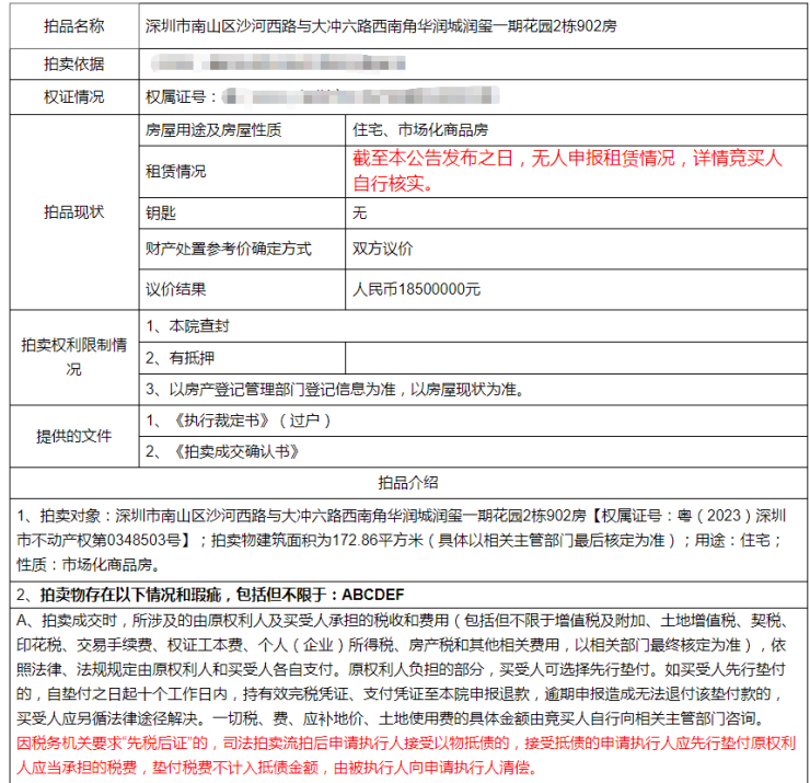 因此,近期深圳上线的多个法拍豪宅,成为了很多买家角逐的对象,毕竟捡漏的机会能抓住一个是一个。