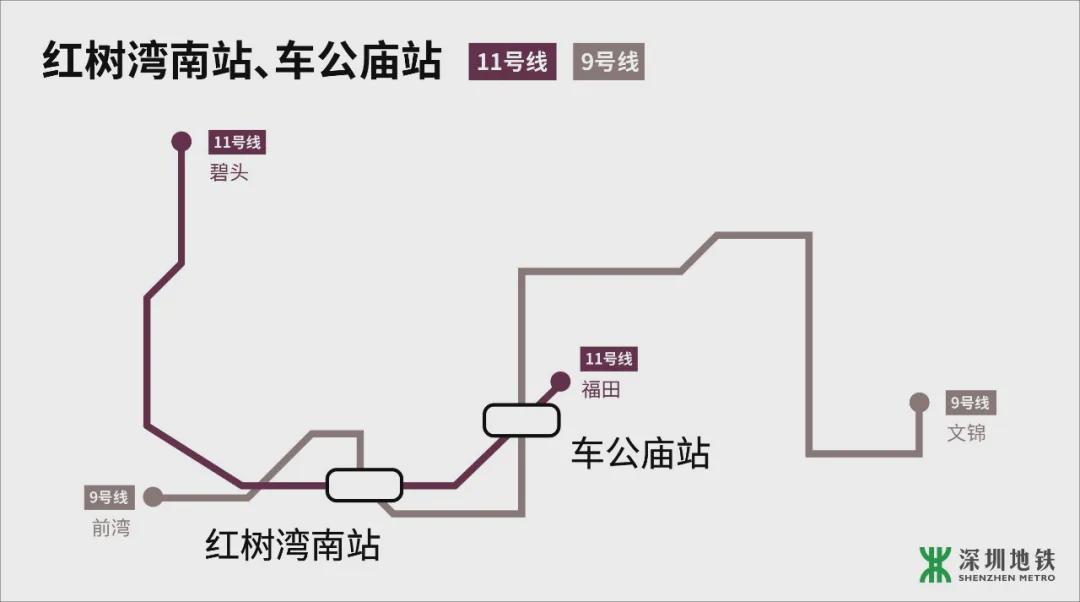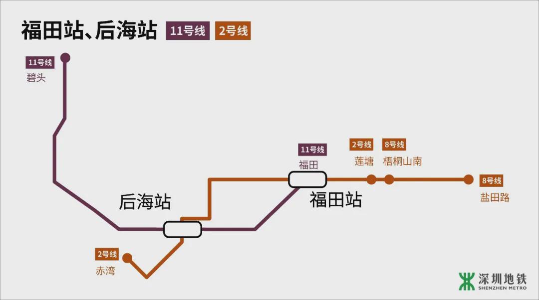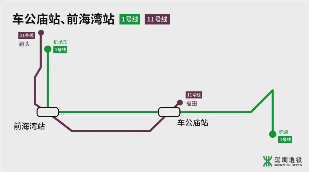 11号线起于福田站,止于碧头站。串联起了福田、深圳湾、后海、前海、宝安中心区、空港新城。