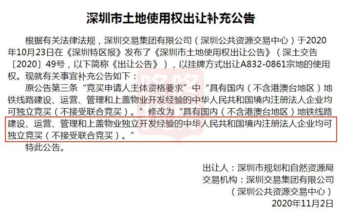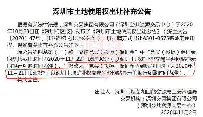 刚刚(11月2日),深圳公共资源交易中心官网发布公告,10月23日将出让的8宗地块中,其中龙华、沙井以及坪山三宗宅地出让条件有变化。