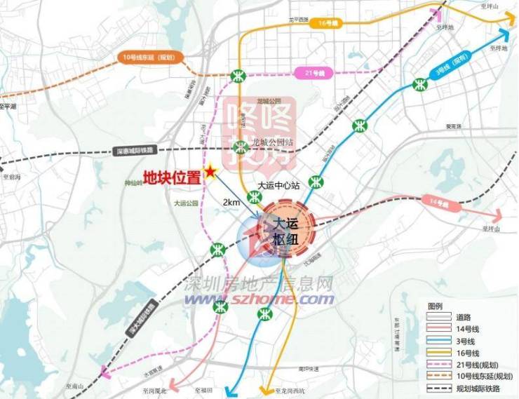 距深圳东部最大的综合交通枢纽大运枢纽站(5号线、14号线、16号线、深大城际)直线距离2km。