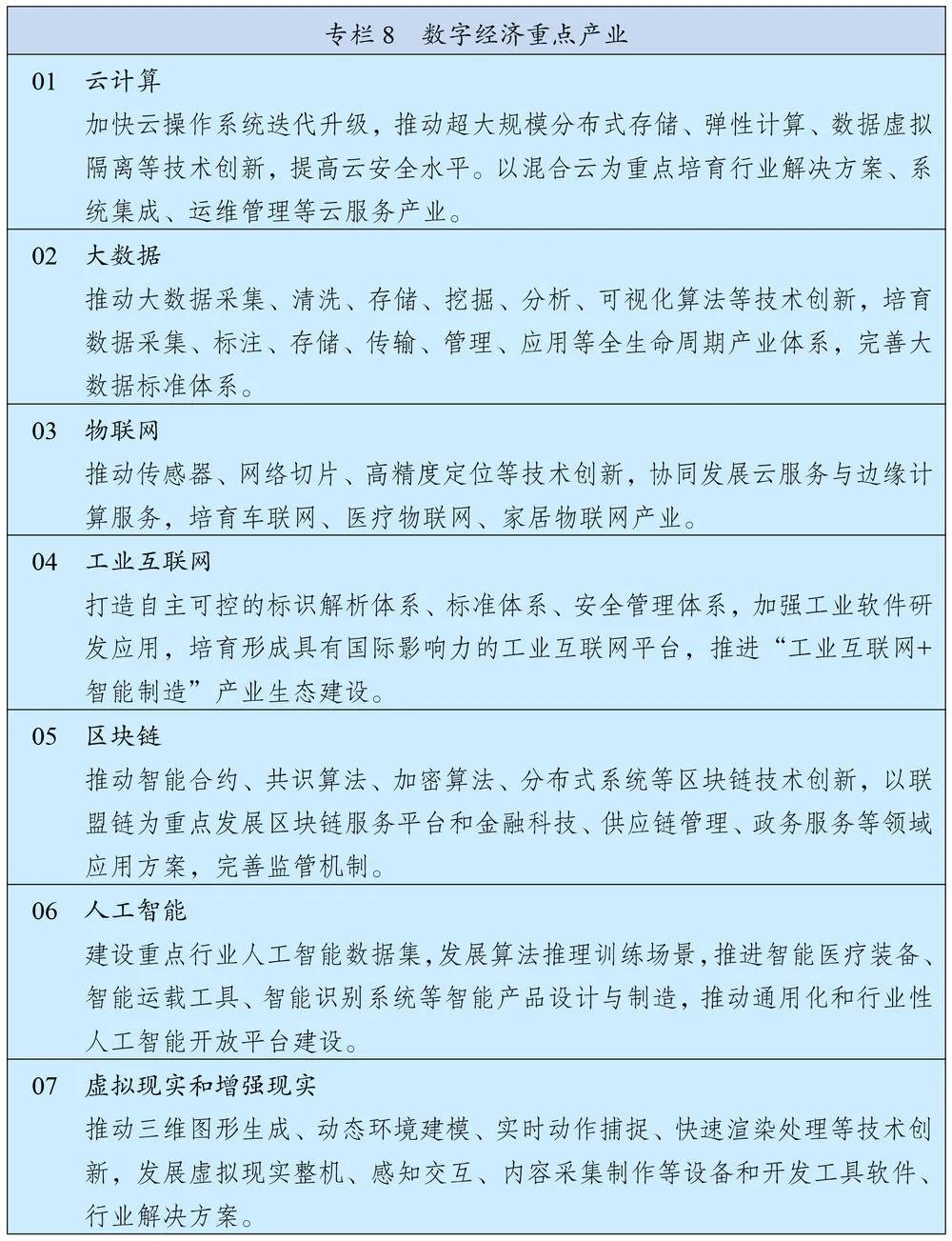 8、推进产业数字化转型:实施“上云用数赋智”行动,推动数据赋能全产业链协同转型。