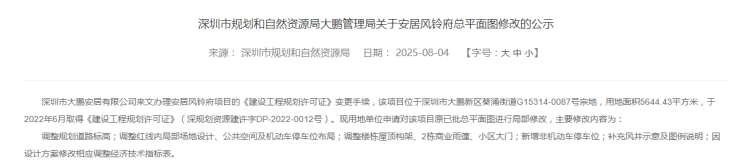 日前,深圳规自委公司大鹏保租房安居风铃府总平面修改公示。