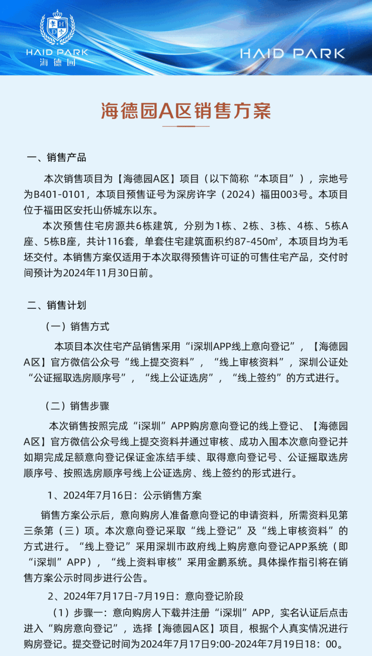 销售方案公示,项目登记时间为7月17日-7月19日,7月21日正式选房。